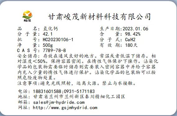 甘肅峻茂新材料科技有限公司 手機(jī)/微信:18522605194 電話/傳真:022-23757385 銷售部:sales@jm-hydride.com 地址:甘肅省蘭州新區(qū)秦川精細(xì)化工園大夏河街1346號(hào)301室